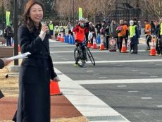 杉並区長岸本氏のスタート前の挨拶を頂きました。岸本区長は通勤に自転車を使っていらっしゃいます。みどり豊かな住まいの都。