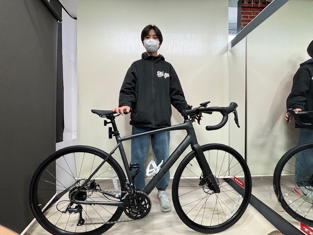 お母様と一緒にいらっしゃいました。初めてのロードバイクの新車、中学1年制で身長172㎝、予算的にAL-2をオススメしました。私が思った以上にしっかりした考えをお持ち、中学1年生にはびっくり!B1のウェアフロアーでヘルメット、ジャージ、グラブ、ビブショーツなど7万近く購入頂きました。帰り道をご説明して、信号が変わるのを見届けました。ありがとうございました。お母様に宜しくと伝えました。
